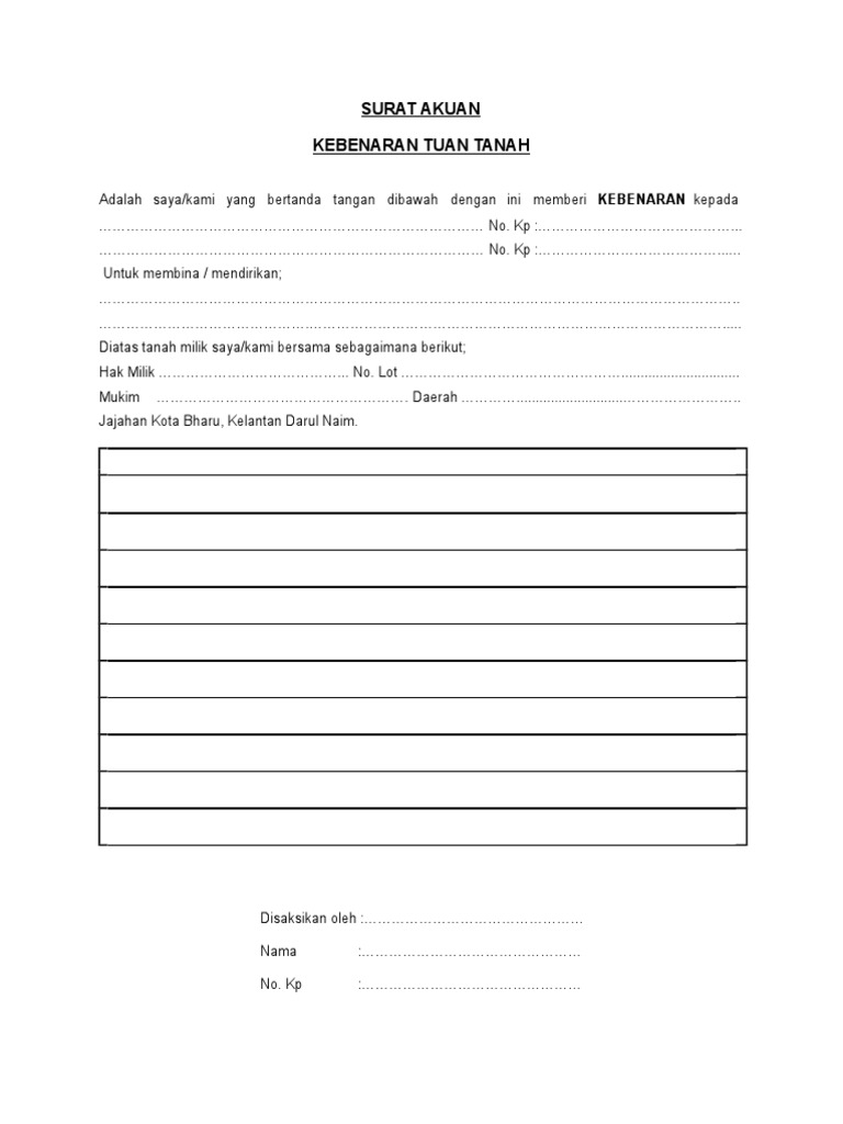 Contoh Surat Akuan Kebenaran Berkanun Dari Tuan Tanah Otosection